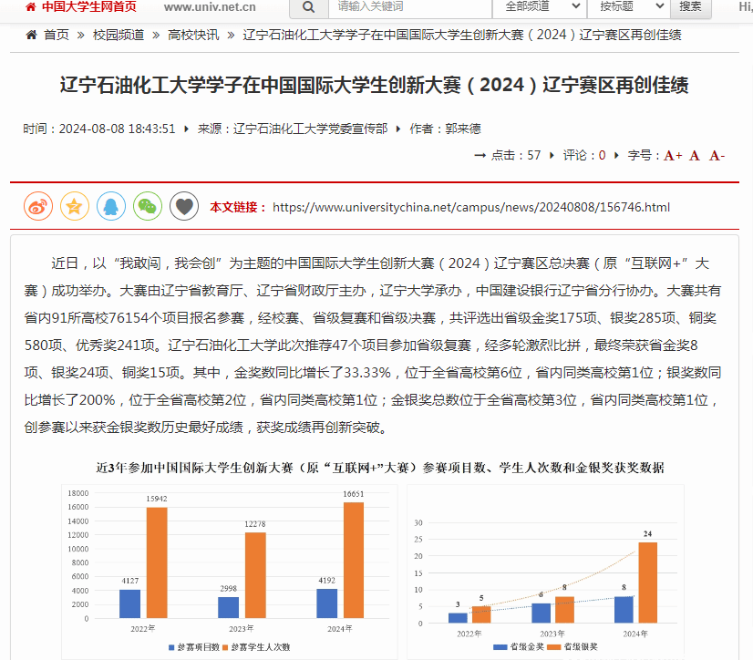 编者按:8月8日,辽宁日报·辽望号、中国大学生网、人民日报客户端·人民号、搜狐号对我校学子在中国国际大学生创新大赛(2024)辽宁赛区再创佳绩进行了宣传报道。现将相关报道转载如下: