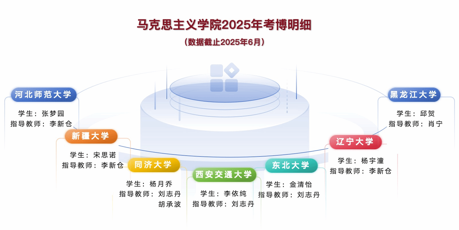 杏坛俊彦,佳音迭至。近日,2025年全国博士研究生录取结果陆续揭晓,马克思主义学院学子喜讯频传。截至目前,学院共有7名应届硕士研究生被西安交通大学、同济大学、东北大学、辽宁大学、新疆大学、河北师范大学、黑龙江大学等重点高校拟录取为博士研究生。考博比例和考博成功率创历史新高。